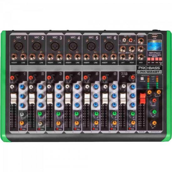 A Mesa de Som PBPM1224BT USB - sendo 6 delas com a opção de XLR e 8 P10. Além disso todos os seus canais XLR contam com equalizador de 3 bandas e uma seleção de efeitos válido todos os canais. Conta com conexão USB, o que a torna ideal também para Home Studios.